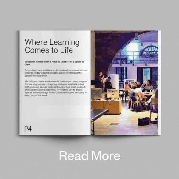 With exclusive access to global brands, local stock support, and customisation capabilities, we help you create settings that are inspiring, inclusive, and built to last — spaces that enhance concentration, connection, and comfort, every day of the week.