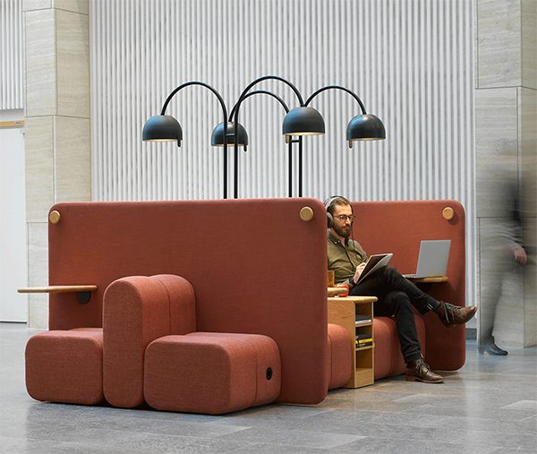 It’s the ultimate in flexible seating-and-meeting solutions, offering users a sofa system, which can be configured in every conceivable way. It can be accessorised with tables, shelves, stationery, plants – the whole lot. But most importantly, its system of partitions can be configured to allow for any number of looks and layouts.