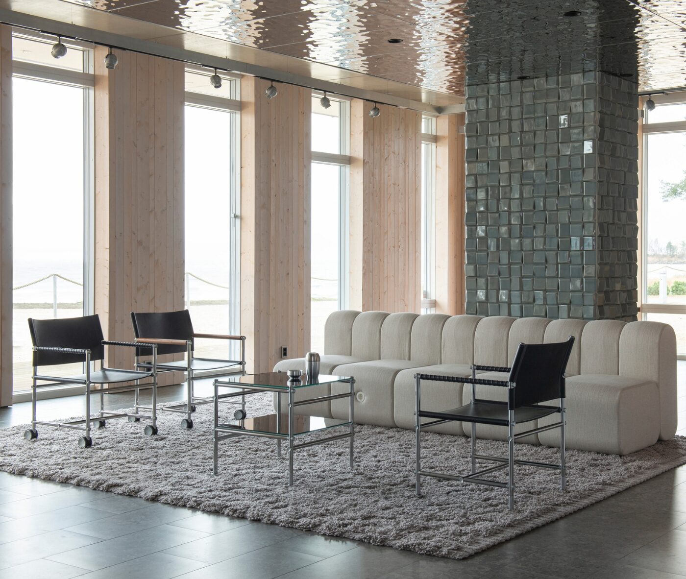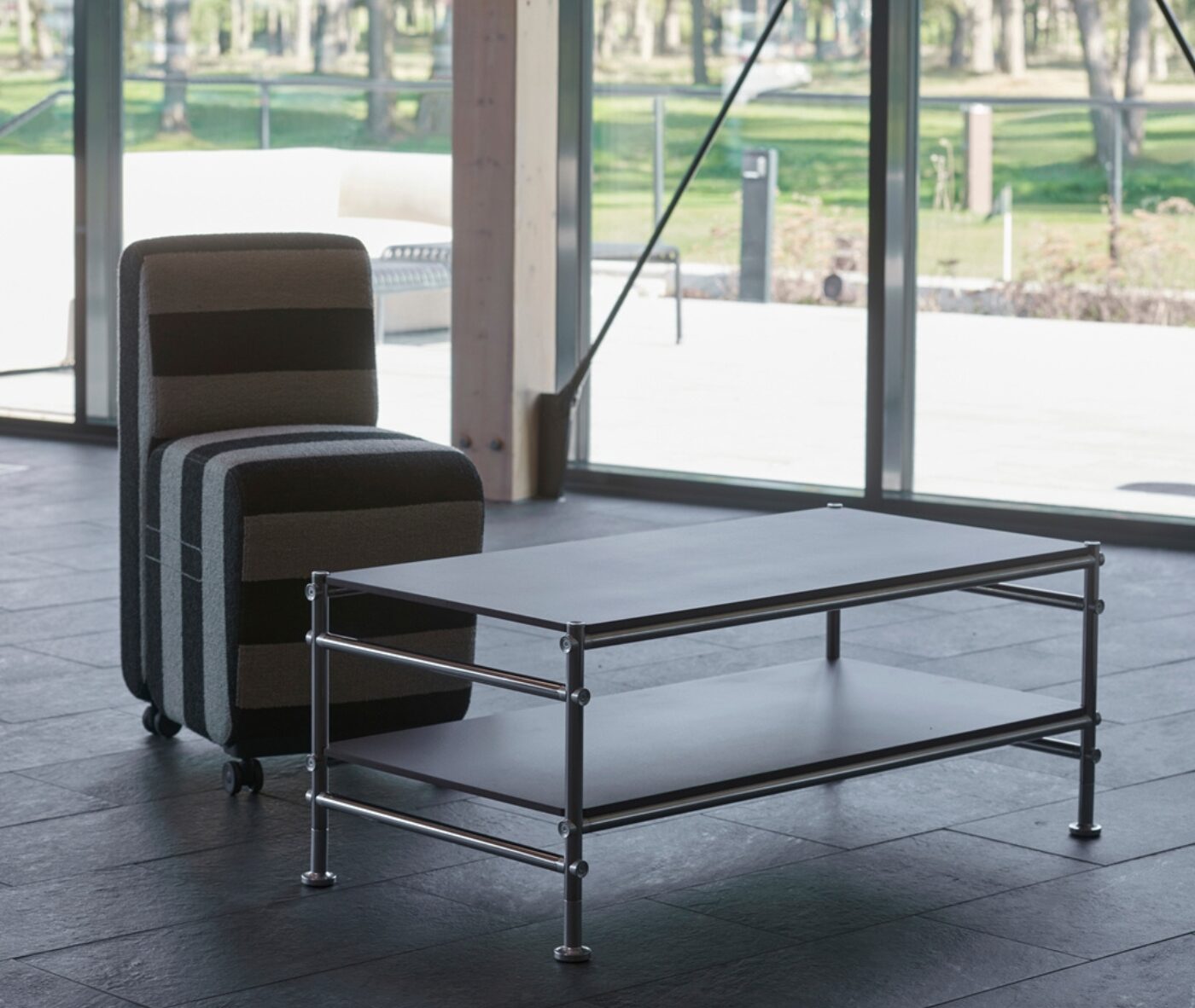 It’s a striking synthesis of steel, zinc, and glass: a crisp, modern assembly where chrome-bright structure and reflective planes lock together with an unmistakable confidence. Versatile by design, ABLE shifts effortlessly between contexts and uses, elevating everything from workplaces, hospitality settings, and public spaces with its clean, contemporary presence.