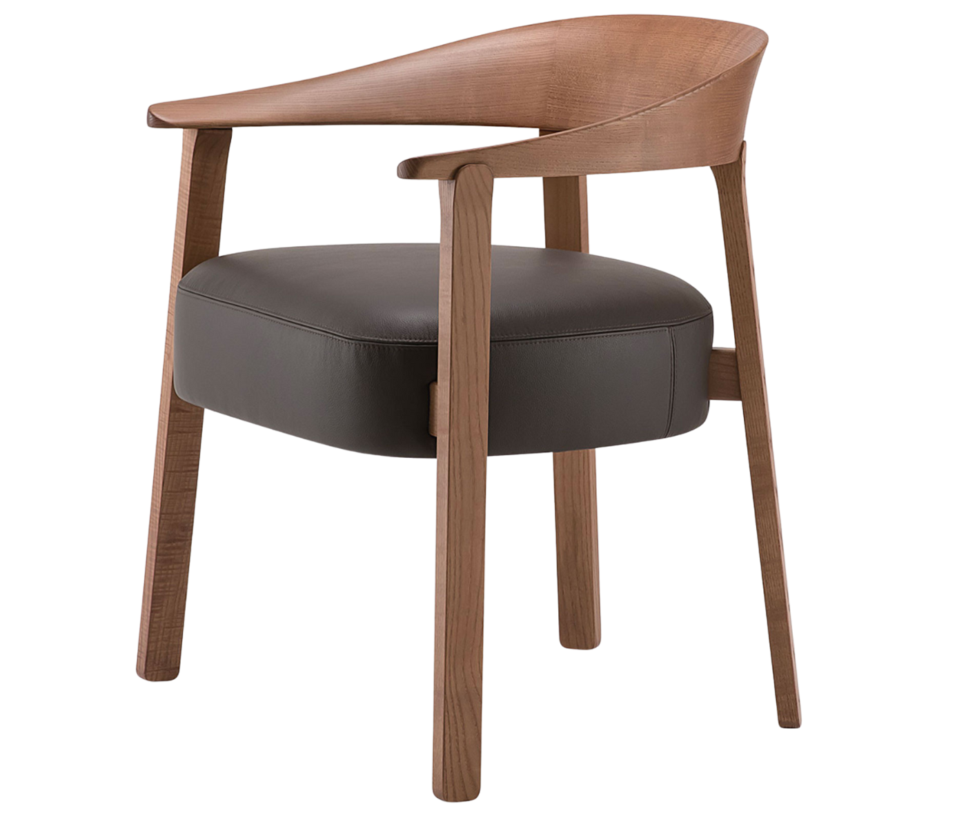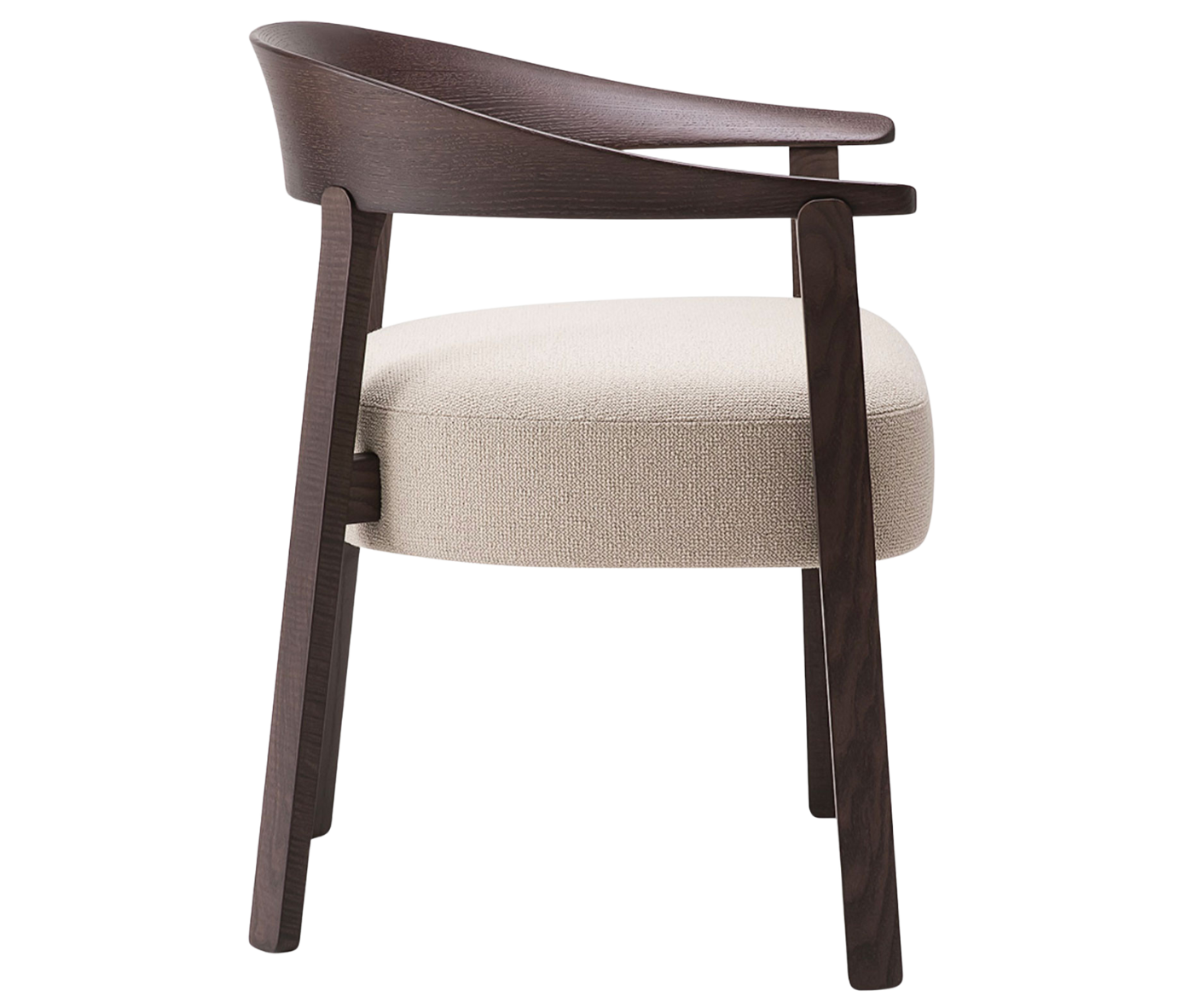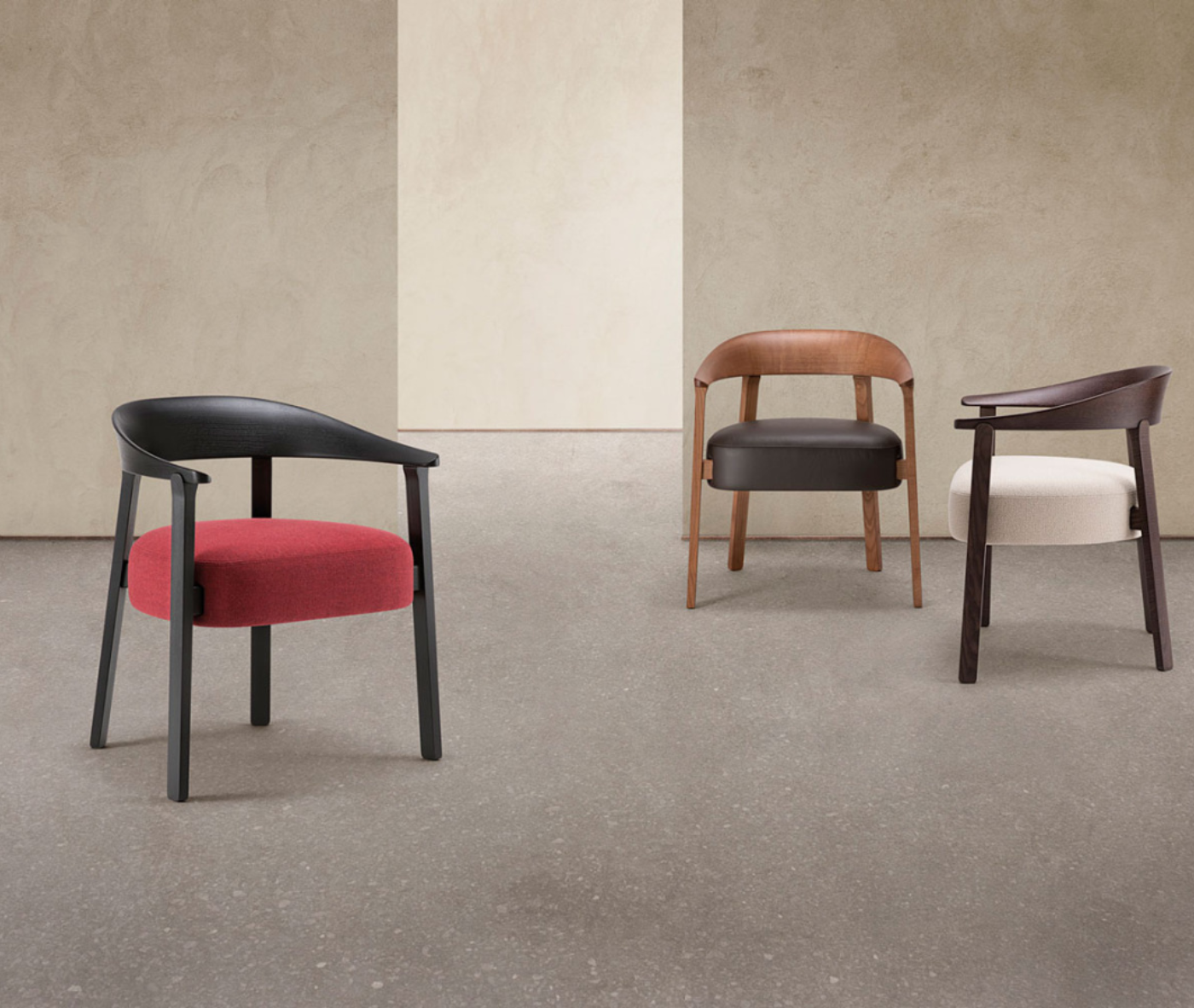 The embracing lines of the backrest offer discreet comfort, while the softness of the seat invites guests to indulge in effortless, lingering conversations. Aurea blends the warmth of traditional craftsmanship with a contemporary design, conceived for exclusive environments where aesthetics and functionality come together in perfect harmony. An icon of elegance, elevating the hospitality experience.