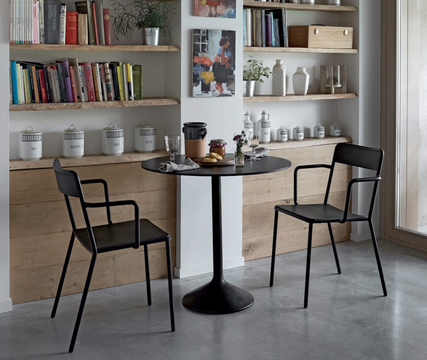 C1 is almost more minimalist than its name: reduced to the minimum, its contours reflect the very basic idea of a practical chair. A delicate yet robust tubular steel frame, with a plain or slotted seat and backrest design, enables C1 to acquire an emblematic character.