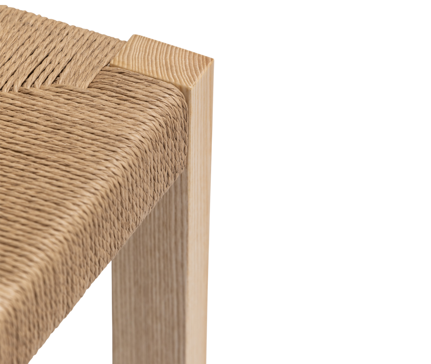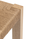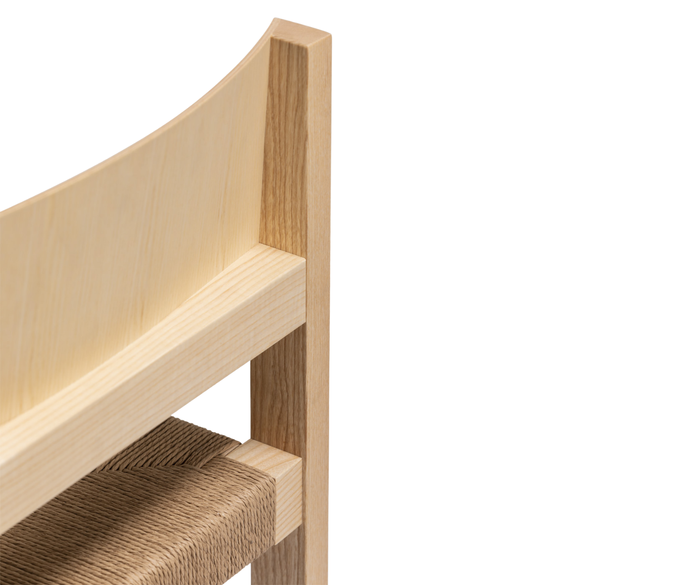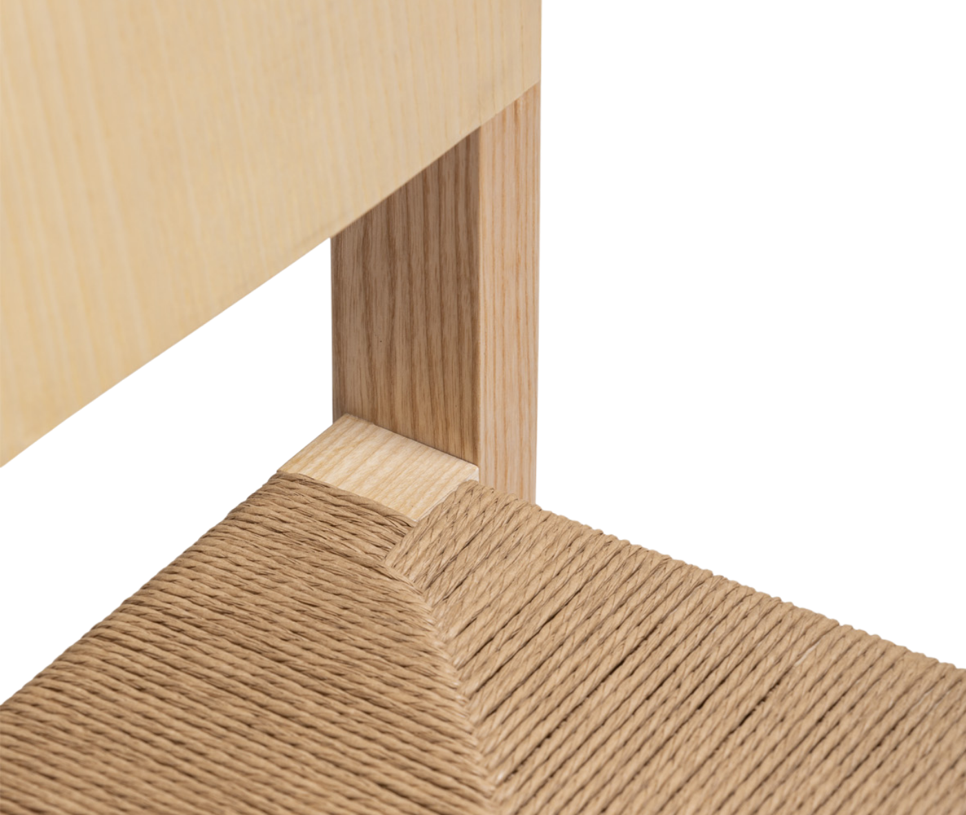 Its clean lines and subtle detailing highlight the natural beauty of ash wood, with seat options in woven rope or leather. Catalina is available with a plywood or leather backrest.