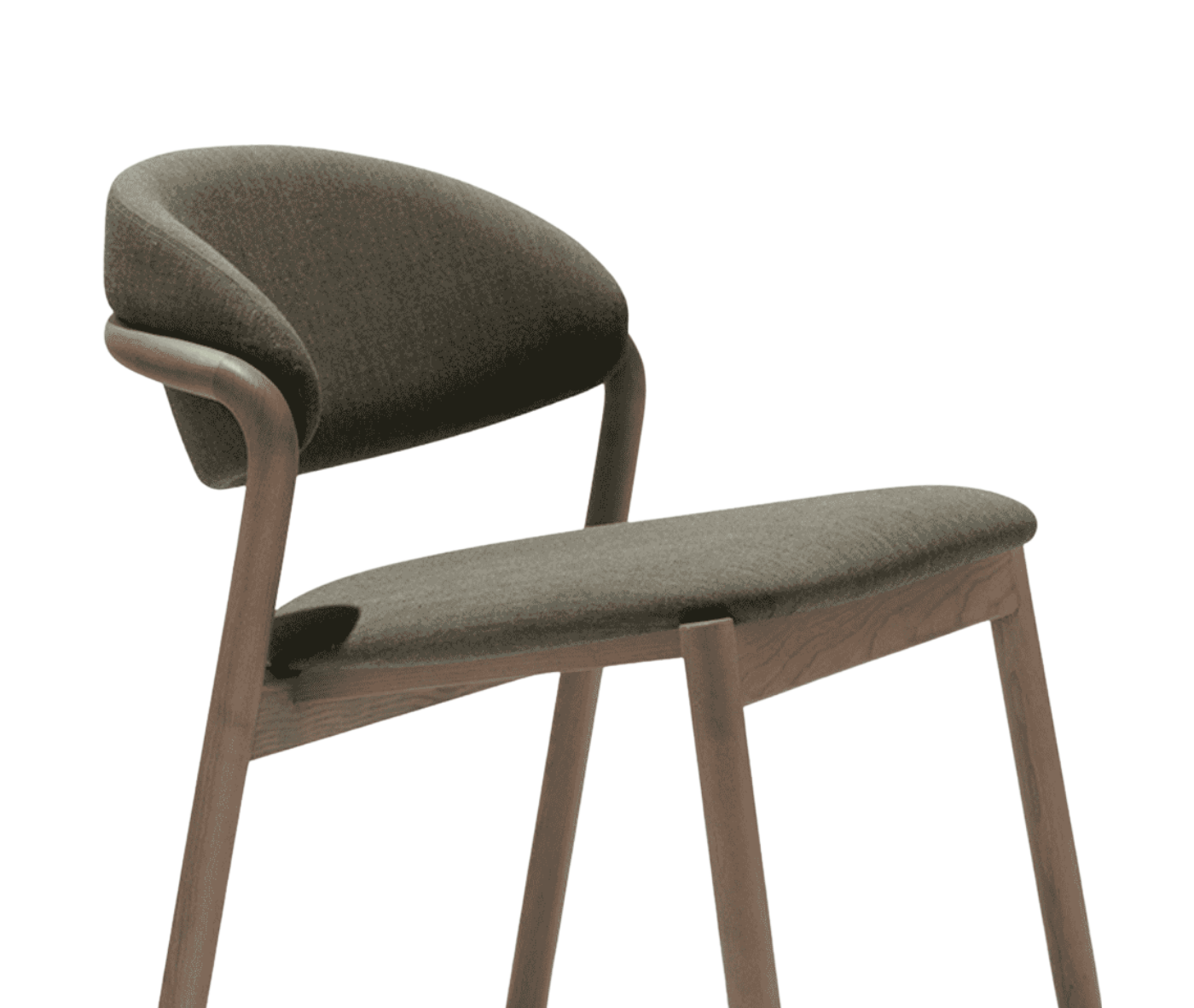 Èlia SE01 is a wood dining chair with an upholstered seat and back, crafted with FSC® certified curved ash wood. Defined by skilful joints and timeless, noble craftsmanship, it embodies elegance and durability.