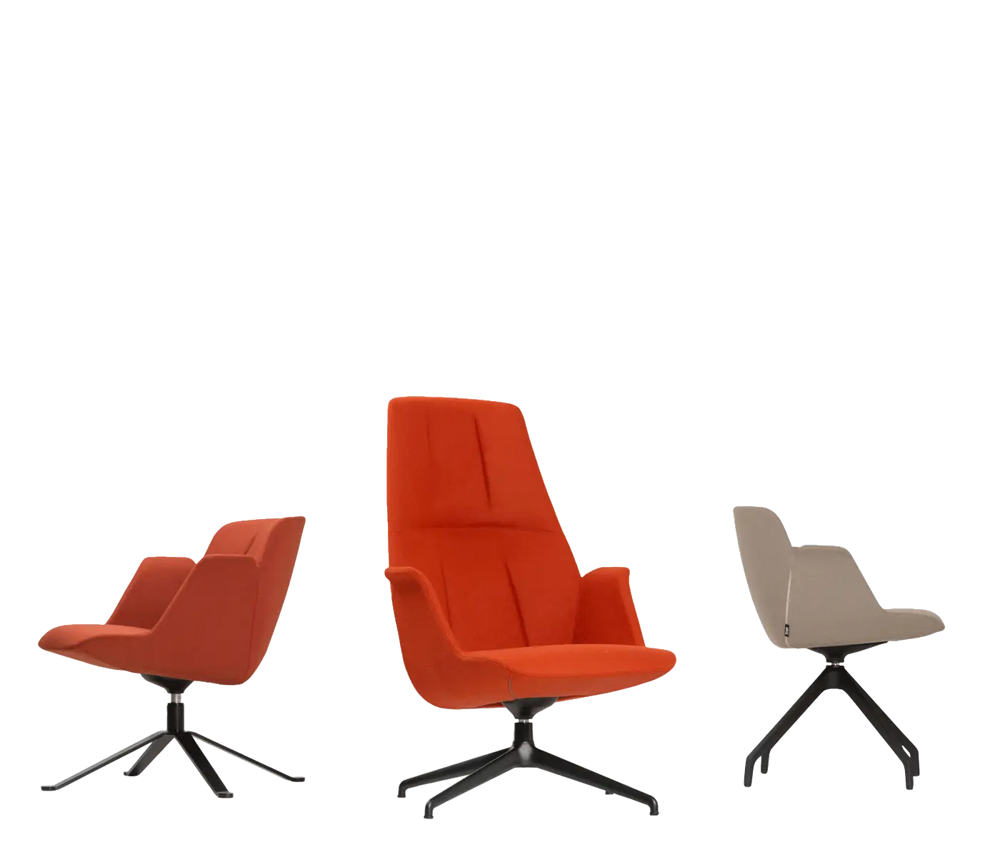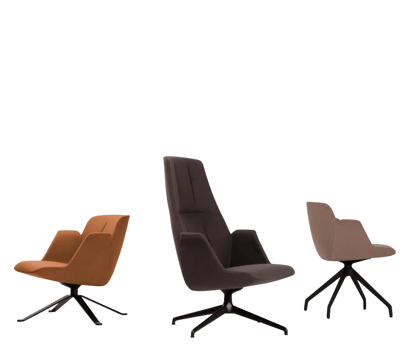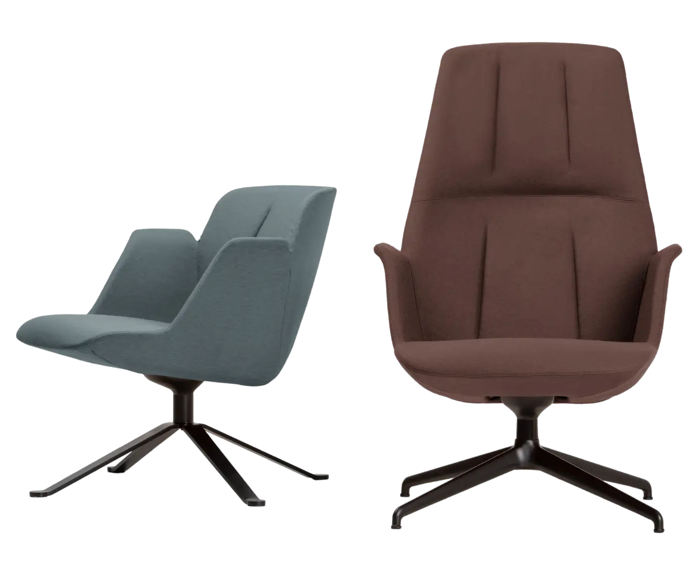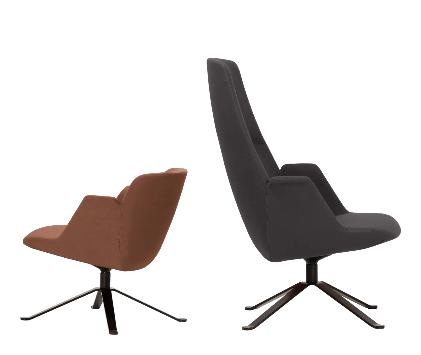 This lounge model features a 4-spoke steel swivel base in selected or custom finishes.