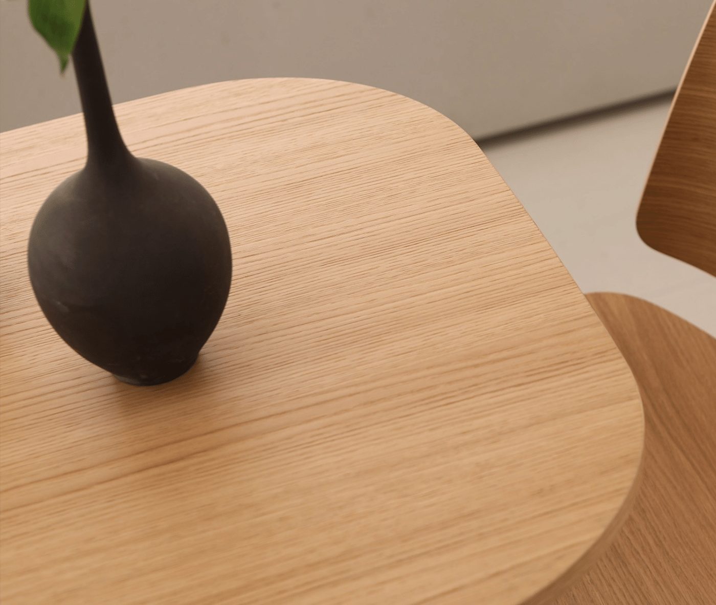 Crafted with a solid oak or ash frame and an MDF top, available in oak, lacquered, or custom finishes, the table combines high-quality materials with a minimalist elegance. Its refined, ergonomic edge gently embraces users, creating an inviting atmosphere while maintaining a clean, modern look.