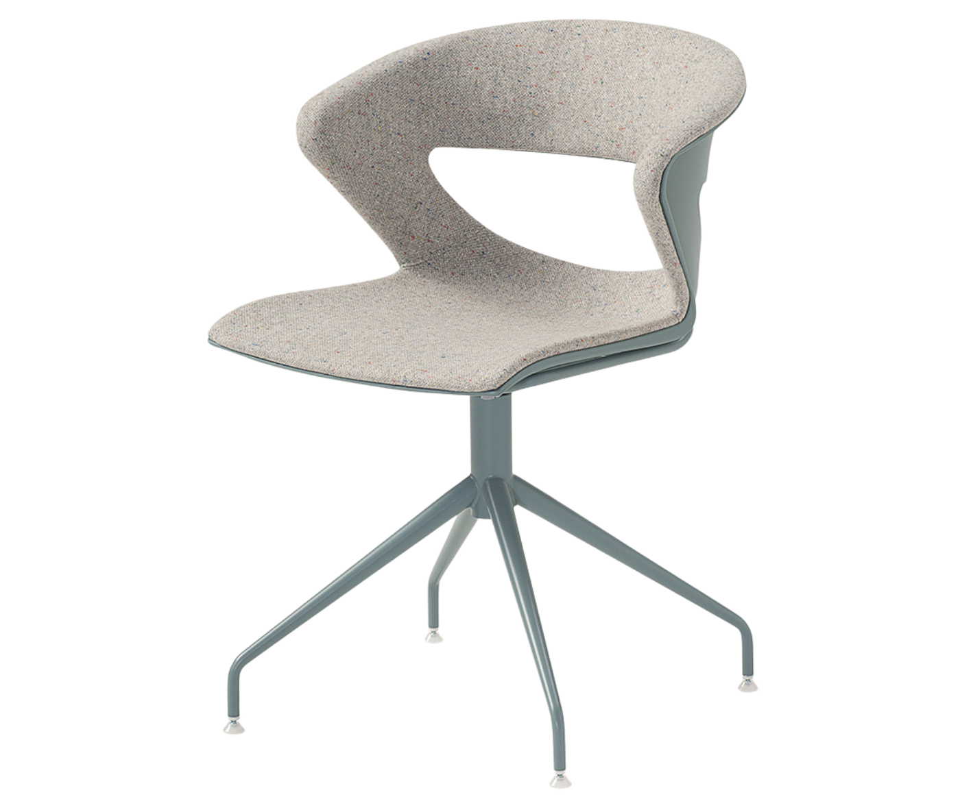 The KC4CSB comes standard with seat and back upholstery, Swivel 4 Leg ‘Spider’ base on Castors finished in Bright Chrome. Black or White powder coat finishes are also available.