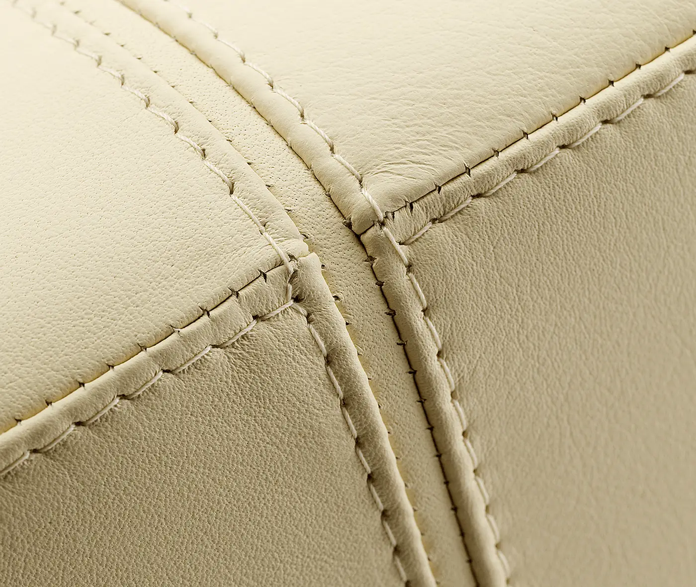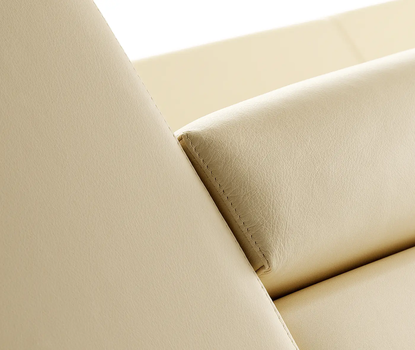 Layla is detailed by a striking stitch detail that defines the back; the clean lines are complemented by the individual polished aluminium legs.