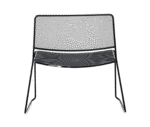 The seat and backrest are constructed from galvanised metal mesh and the frame from solid 11mm diameter galvanised steel rod with polycarbonate glides, all available in a range of standard finishes.