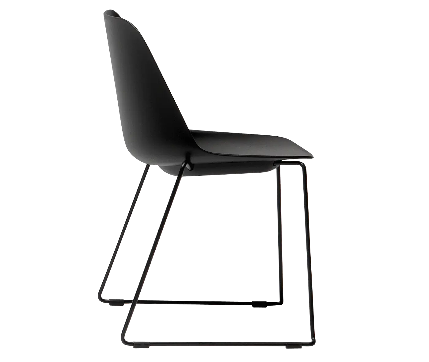 Max is manufactured with recycled polypropylene and this model features a stackable steel sled base in selected finishes. Custom finishes are available at an additional cost.