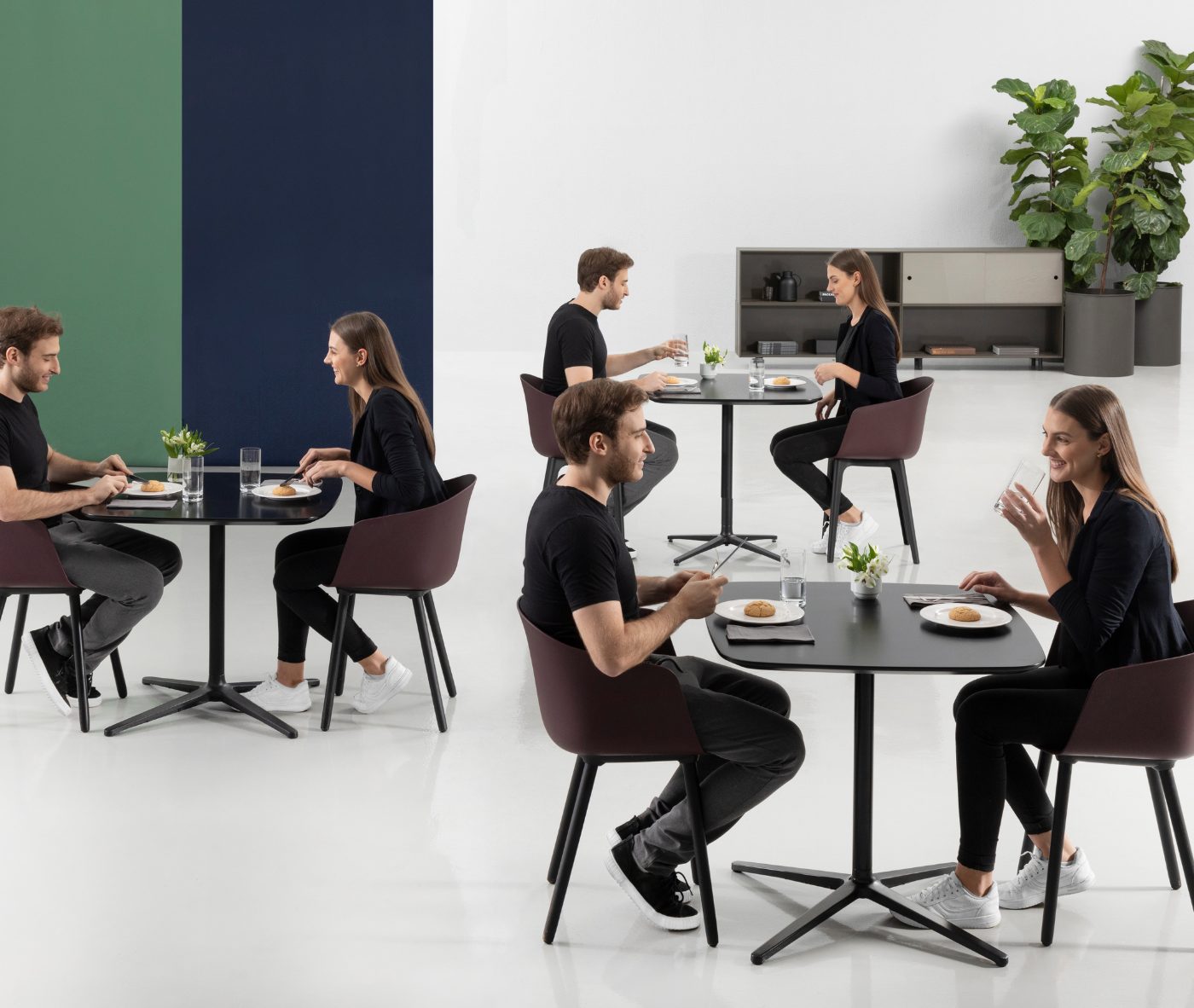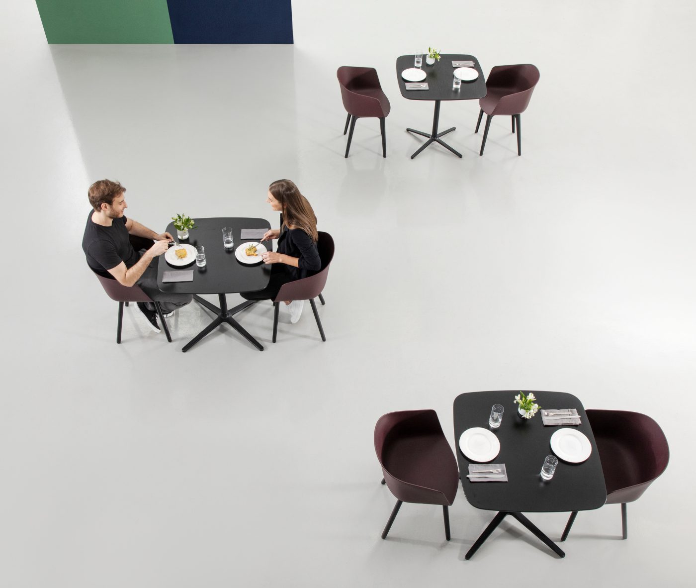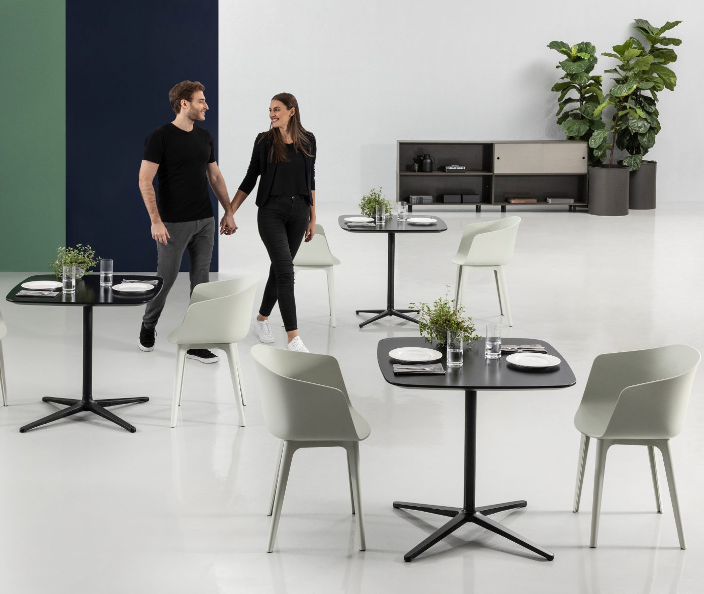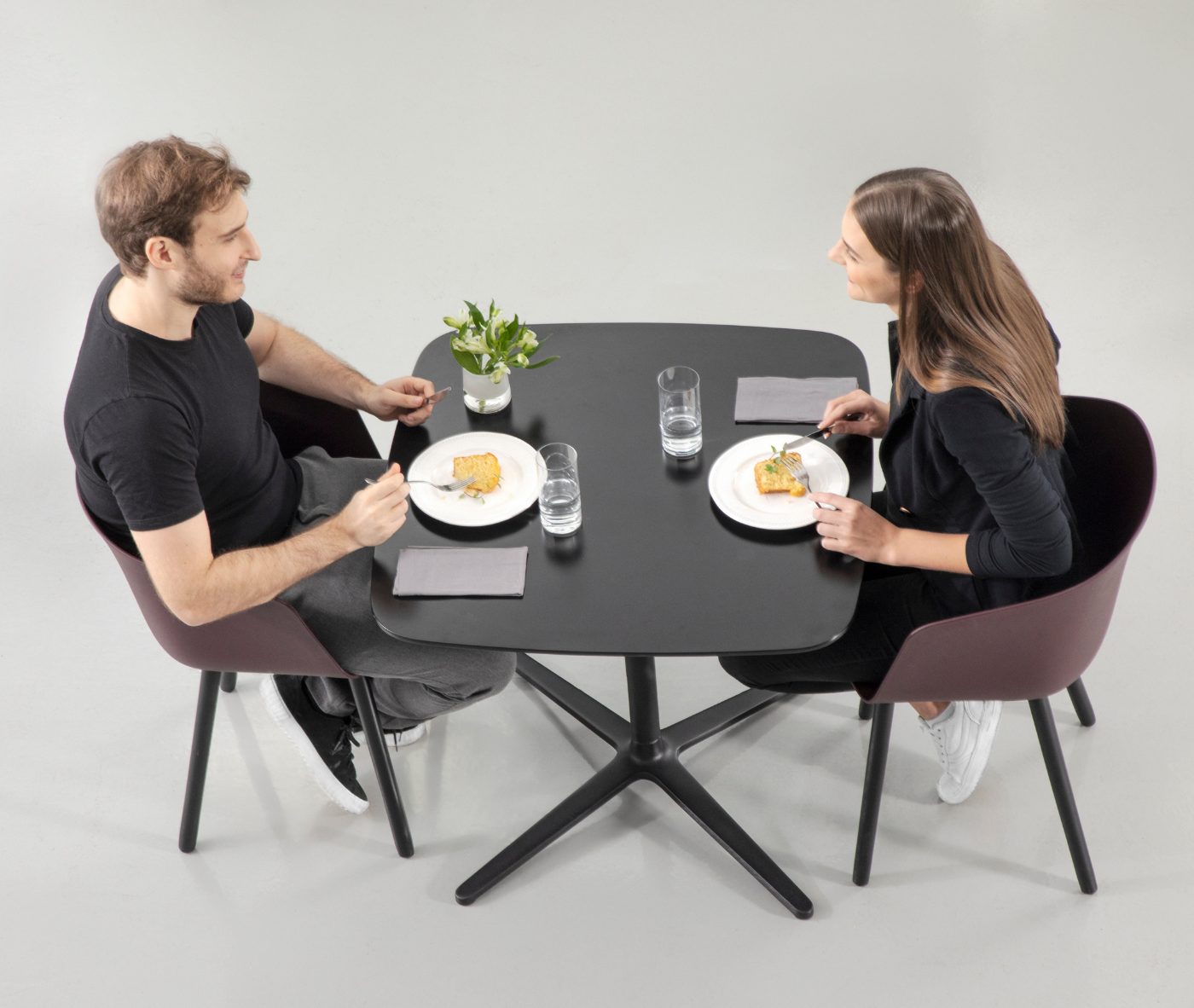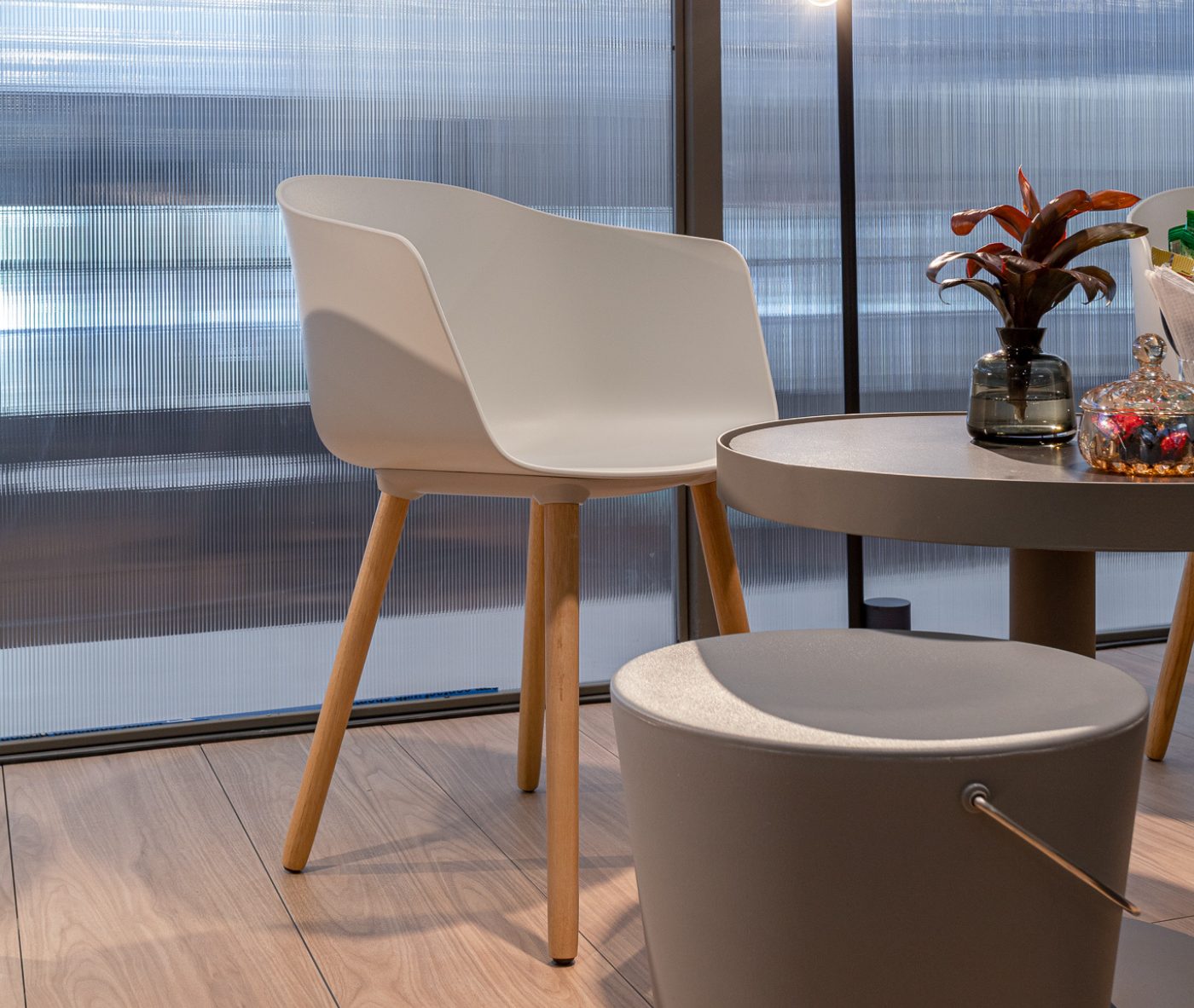 Designer Christoph Jenni describes the Max collection as “a sort of mix and match attitude takes place in the association of components, materials and products themselves. It is an open and adaptive program driven by the search for comfort, versatility and sustainability. We look at our collection in relation to the multitude of contexts and possible combinations hidden behind needs and projects. There is a whole new concept behind this product development. All the different frames have been thought and designed to fit both products, chair and armchair. A “one fits all” approach in line with the crucial values of functionality and flexibility. Moreover, recycled organic polypropylene and eco–friendly recycled wood have been added to our collection. These new additions are used for bases as well as shells. The result is a monolith object made from the same reclaimed material, a well–proportioned chair where the structure is hidden in the form itself.”