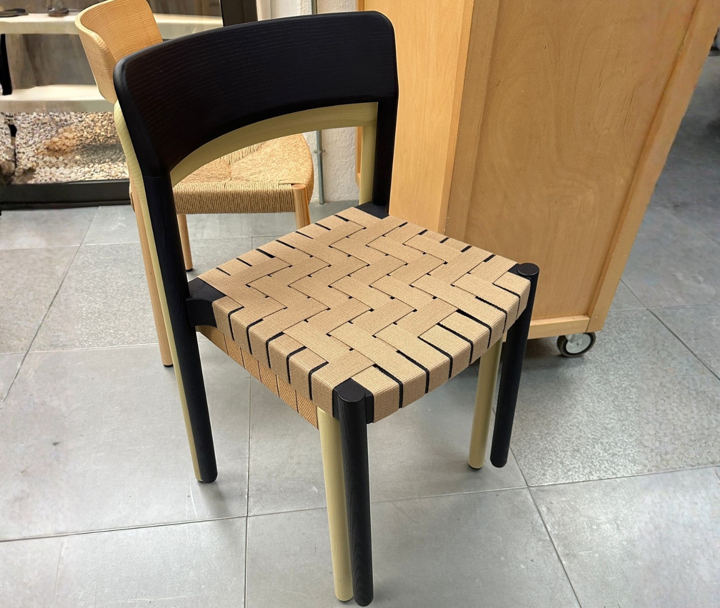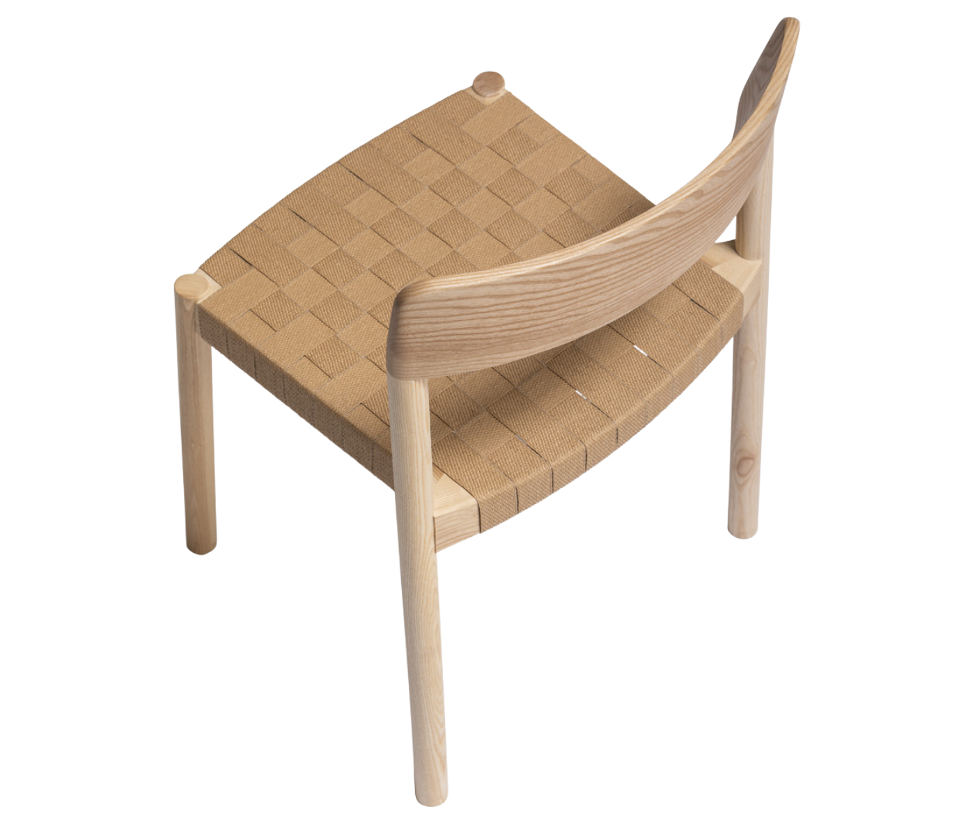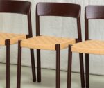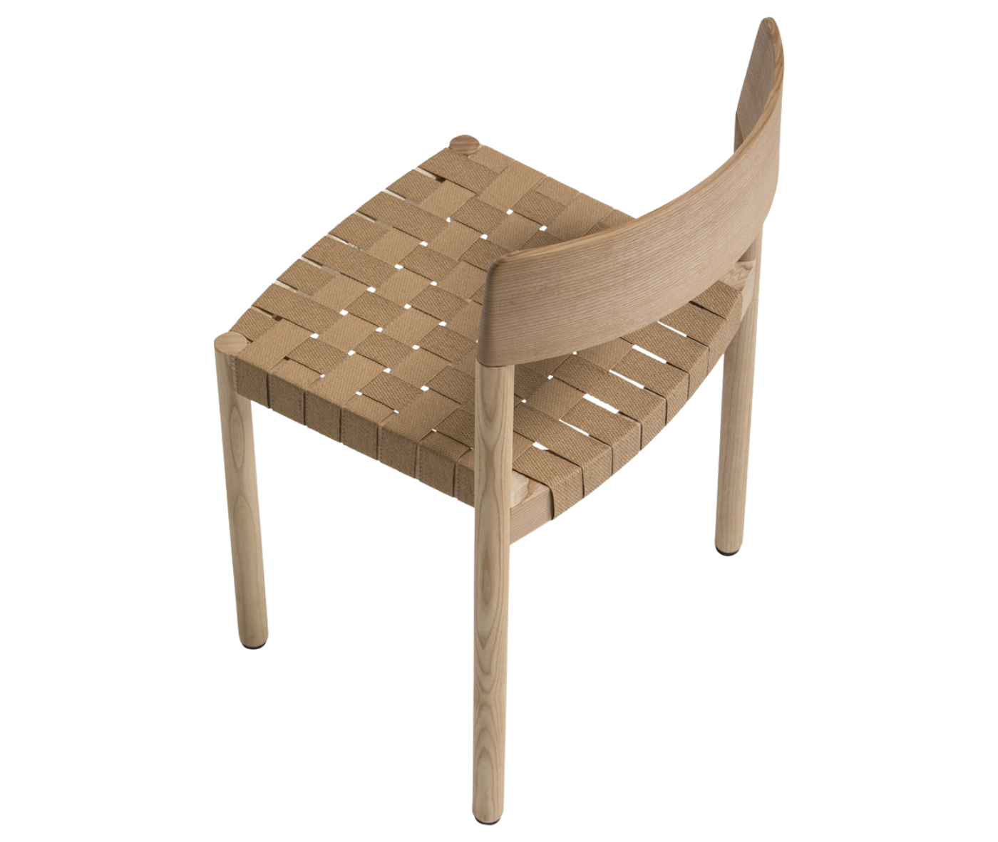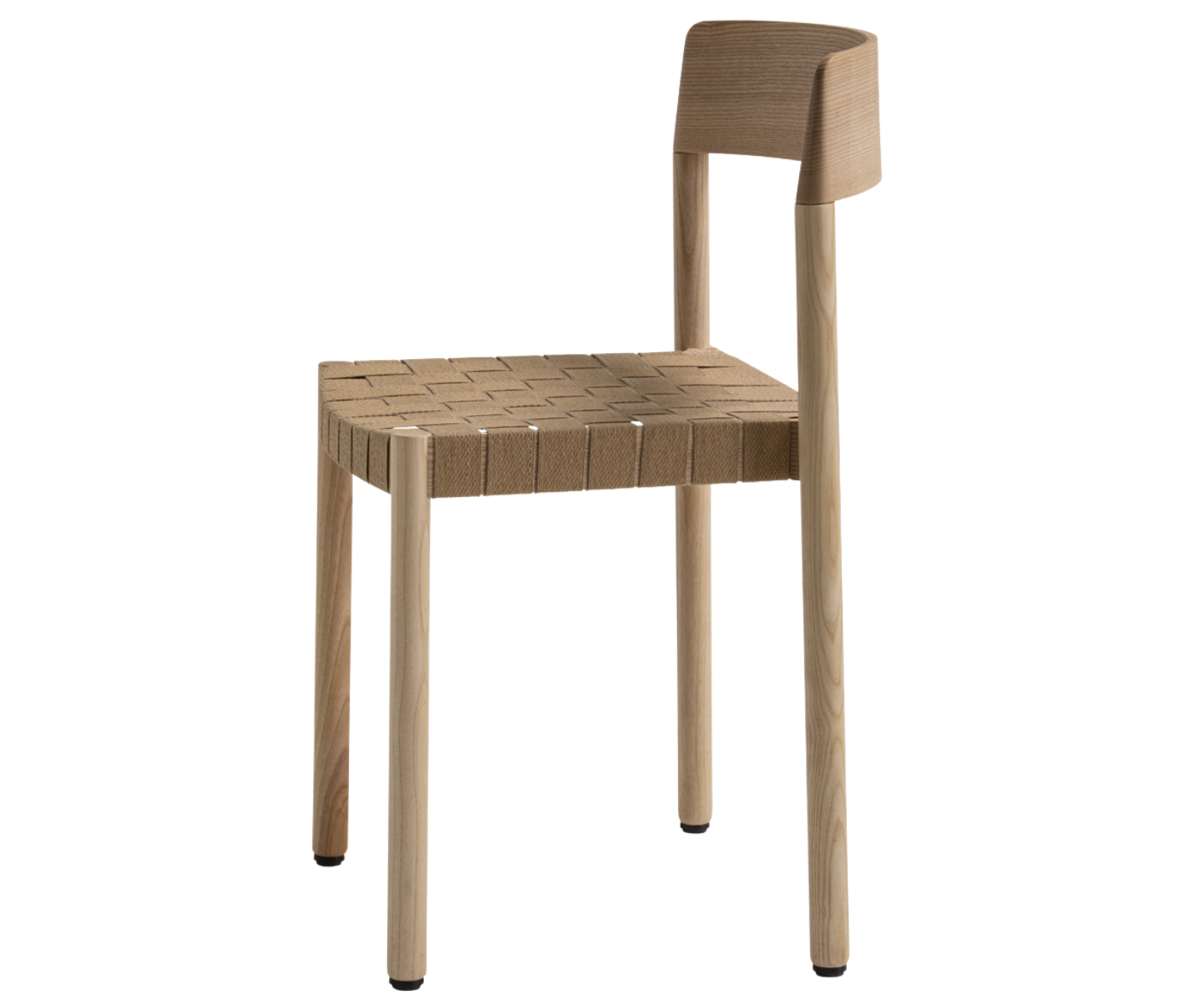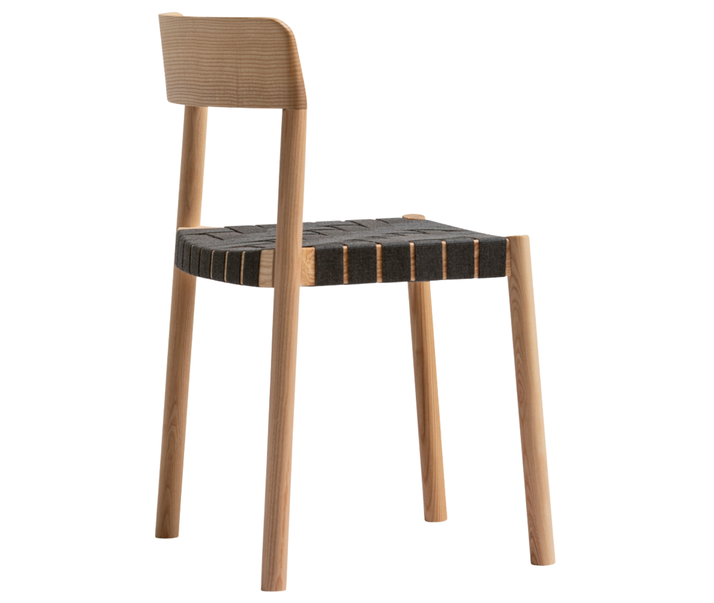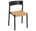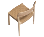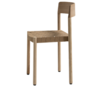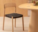 It is manufactured in ash wood and its backrest seems to have been sculpted to delicately mould to the back. The seat can be woven with different materials to offer a soft and comfortable sitting position.