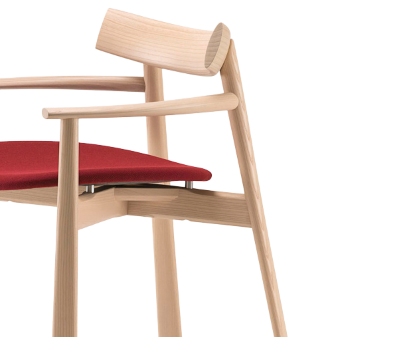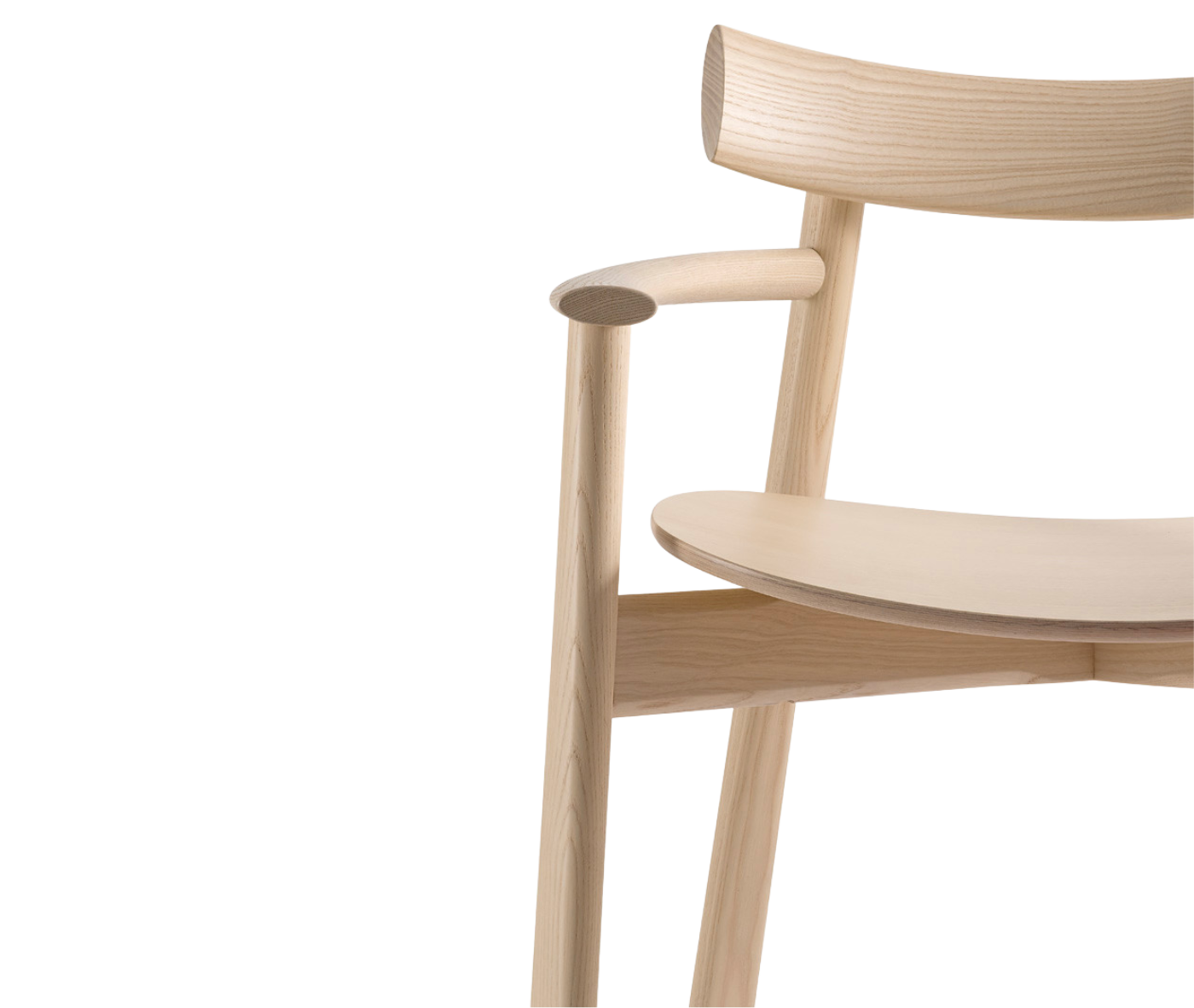 Remo is a dining armchair in which the light look combines with the great solidity of the structure. The main feature is the particular shape of the legs, that widen from elliptical to flat, in a way very similar to the oars of the boats typical of the Venetian lagoon, on which stands a backrest with a strong but delicate shape.