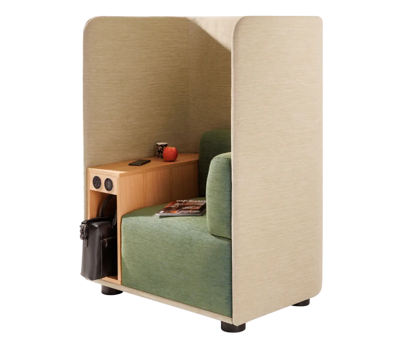 A single sofa where everything is possible: resting, working, charging and recharging, eating, concentrating, reading and… sitting down!