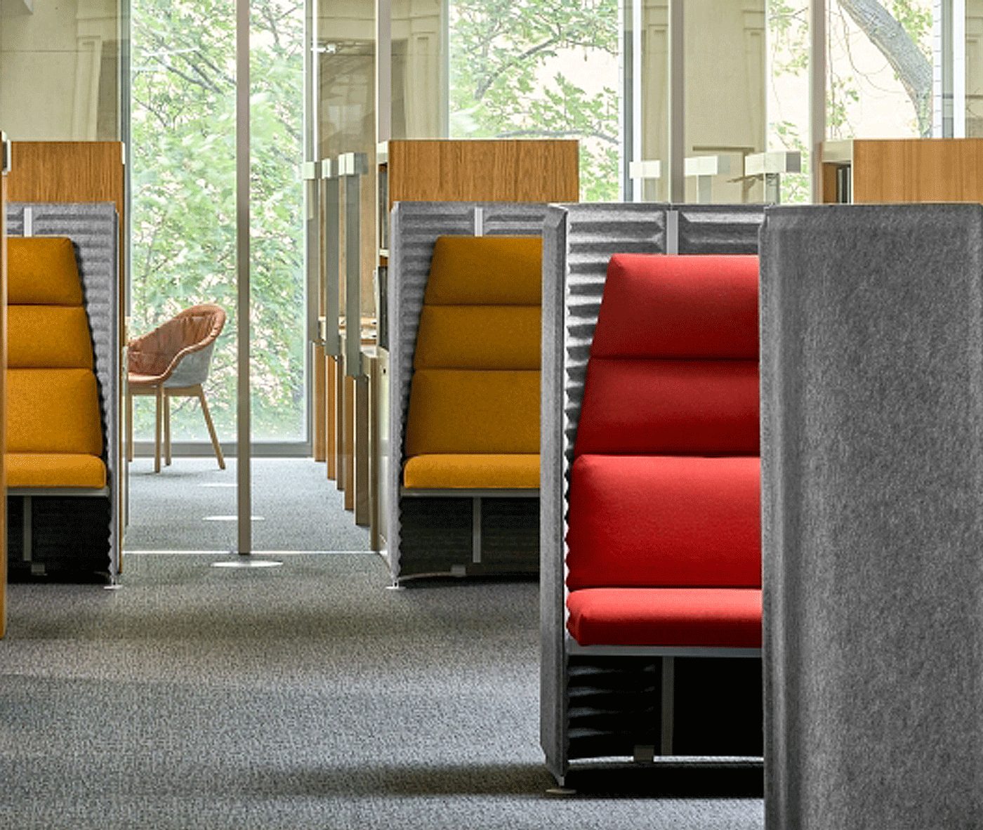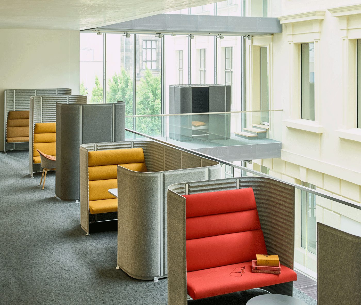 Soundroom is designed for open office spaces for organizing work, collaboration and rest areas. It offers an opportunity to freely define different workspaces and conditions, which has a significant positive effect on quality and performance, fosters good relations between workers and produces a range of benefits for the enterprise. This is because acoustic comfort achieved with Soundroom is necessary to perform work tasks reliably and without errors, and ensures an undisturbed exchange of information and successful communication. Companies are able to arrange areas for creative or analytical teams, depending on current needs, and to model job-related clusters within buildings. Work teams have access to a virtually unlimited number of possibilities to set up spaces for individual and teamwork, comfortable meetings and concentration.