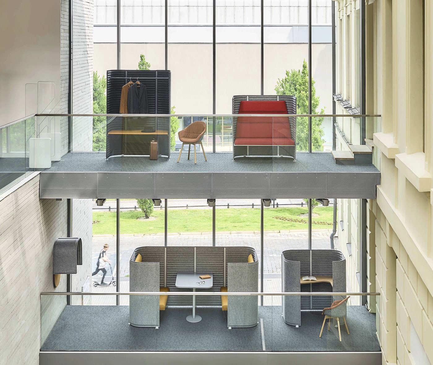Soundroom, designed by Tomek Rygalik, is an original and innovative system of office furniture. It comprises a range of complementary solutions which make it possible to compose a landscape of the contemporary office with a focus on spatial and acoustic aspects. Soundroom integrates an innovative acoustic panel technology with the sound-diffusing geometry drawing on solutions that are used in recording studios. The systemic design consisting of a variety of mobile acoustic screens makes it possible to deliver an array of functionalities required for work and to create an architectural context for furniture.