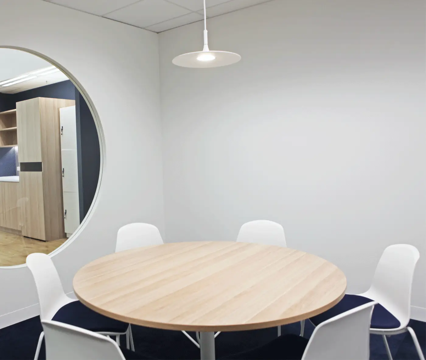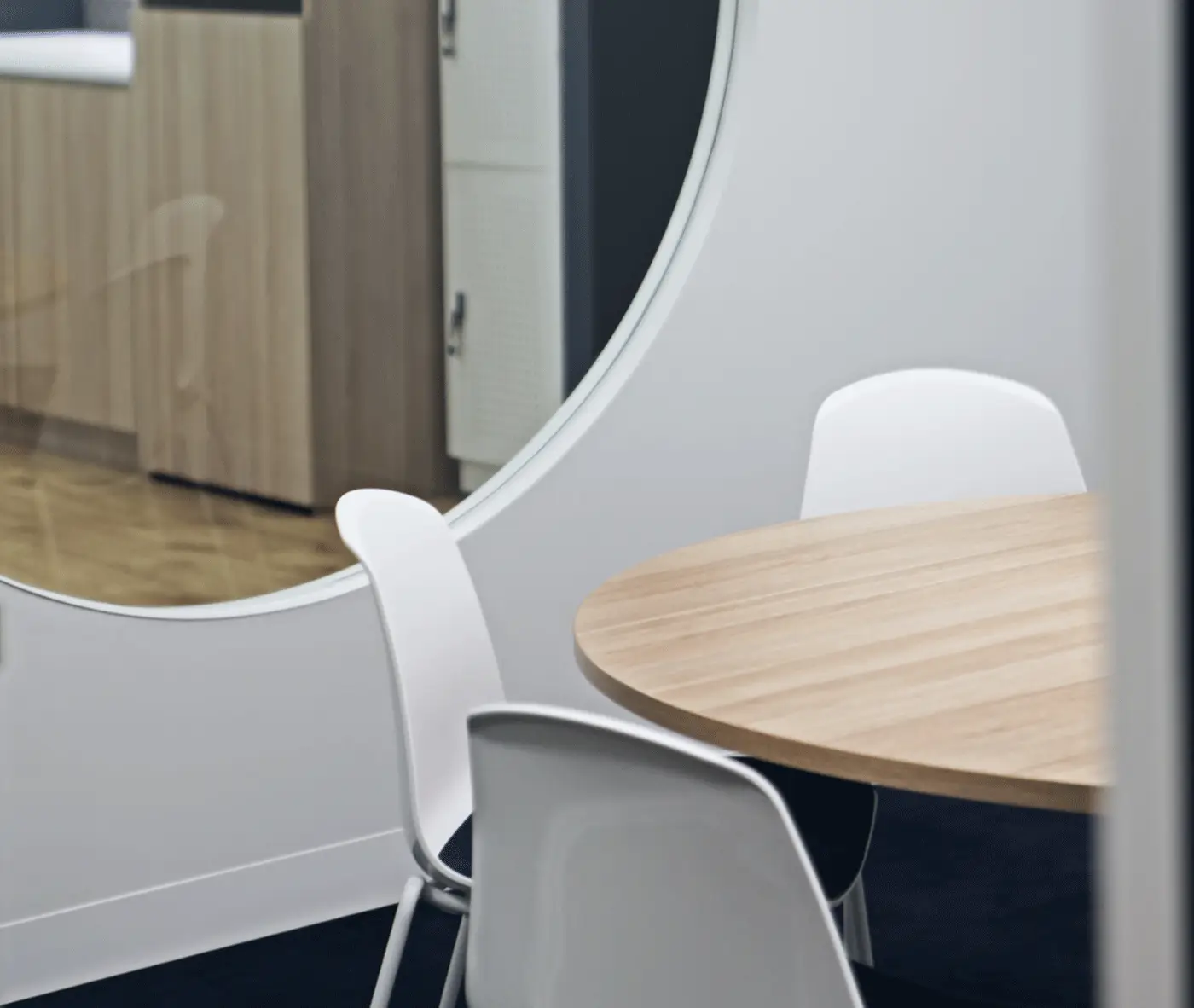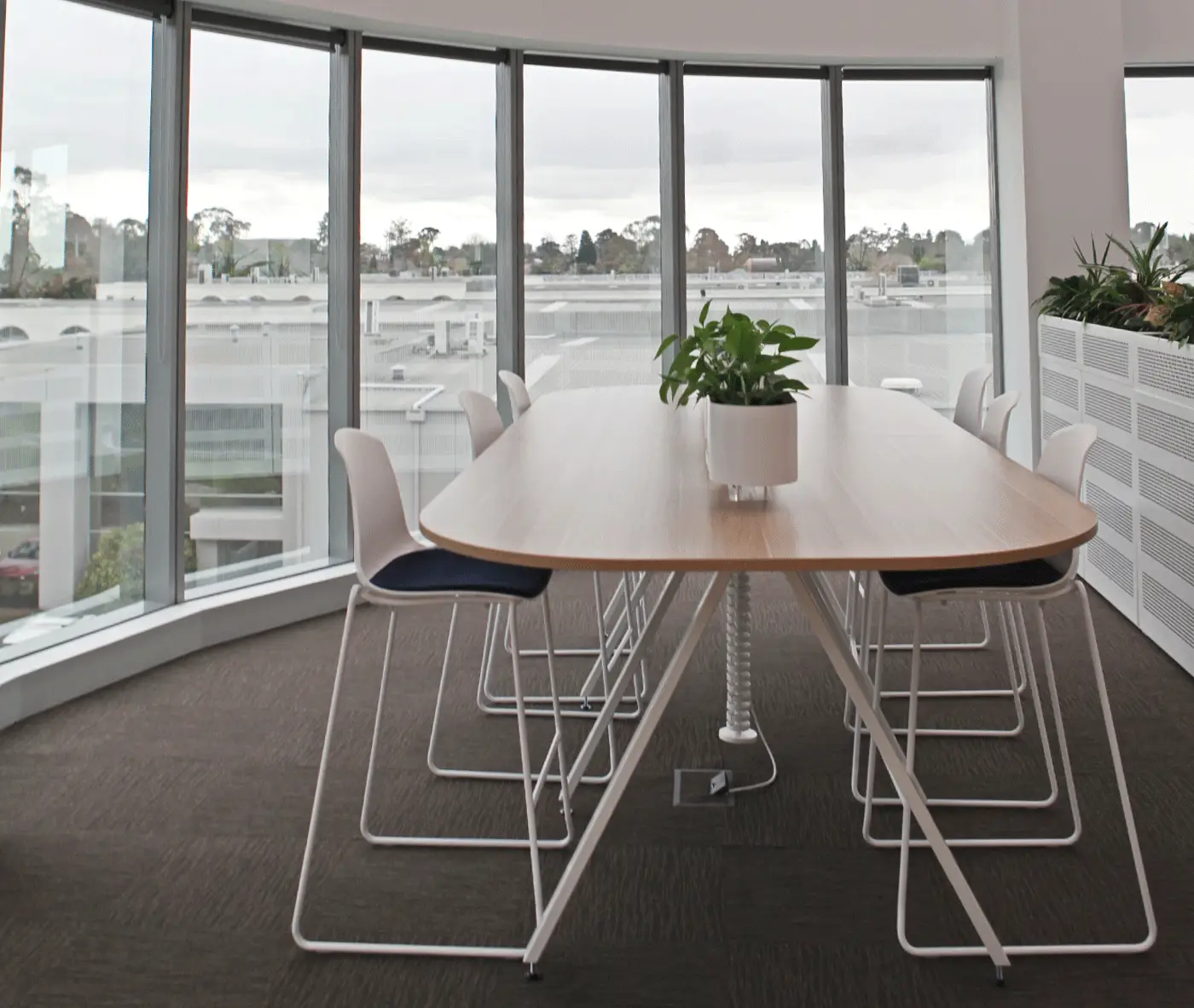 The warm and natural Beech tones of our Hellen Plus SE01 chair perfectly contrast, yet compliment the lush greenery in the Cafe/Kitchen area of the workplace.