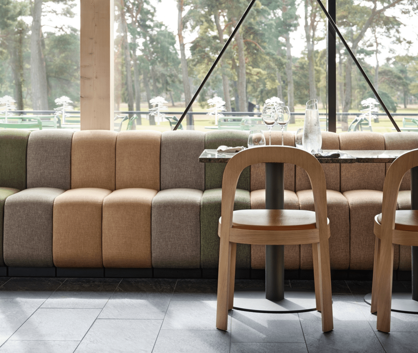 The result is a harmonious symbiosis between space, architecture and the stunning landscape outside the large windows. And there, outside the windows, on the terrace of the outdoor dining area, the club chose to reuse its former outdoor furniture Straw from Blå Station, now repainted in three shades of green and thus do what many today want, namely to keep but update – all in the spirit of ReUse of the time.